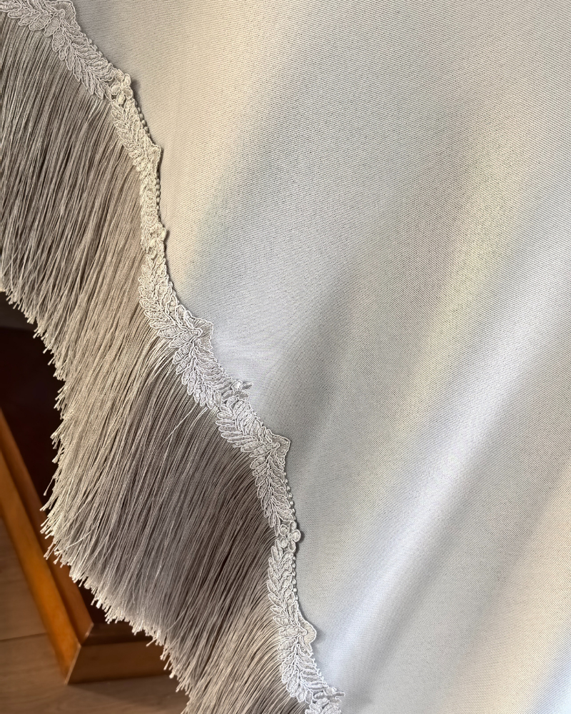 Ev dekorasyonunda fark yaratmak isteyenler için özel olarak tasarlanmış saçaklı ve sutaşı işlemeli masa örtümüz, sofralarınıza zarafet katmak için üretildi. Her detayında özenle işlenmiş bu masa örtüsü, misafirlerinizi hayran bırakacak şıklığı sunar.